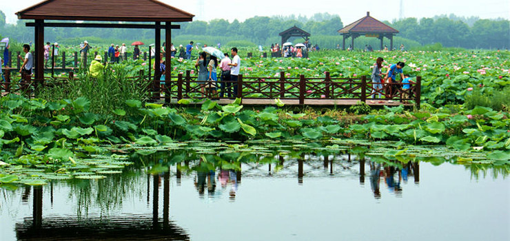 荷塘月色湿地公园坐落于相城区城市中部太阳路与广济北路交叉口西,占地面积约2000亩,引种500余种荷花、睡莲、王莲等水生植物,有热带王莲水景、百荷流香栈桥、浮香索桥、荷月楼宣教馆、爱莲阁文化长廊等特色游览项目,是一座以荷花为主题的城市湿地公园。全园以荷塘湿地生态系统为依托,集生态旅游、休闲观光、荷文化产业、科普教育和湿地保护于一体。每年赏荷旺季,荷塘花海绵延数里,泛舟采莲荡漾其间,尽显江南水乡诗画风情。