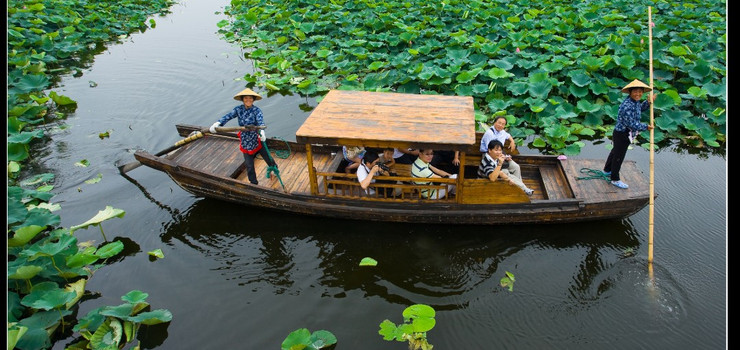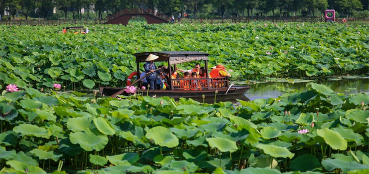 此项目位于荷塘月色湿地公园莲舟码头,乘着乌篷船,听着船娘们用桨声和歌声奏起的江南婉约秀丽的清歌,是游客旅游休闲观光特色游览项目。