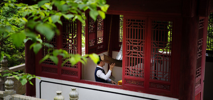 东西横列如屏 松柏夹道,浓荫蔽日