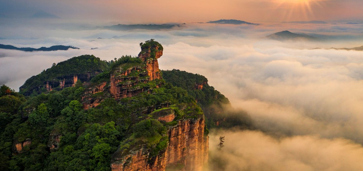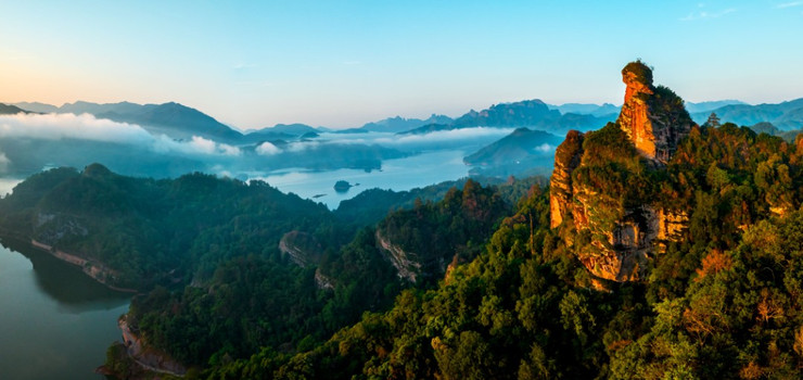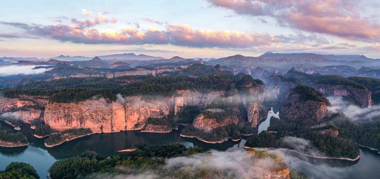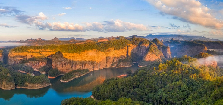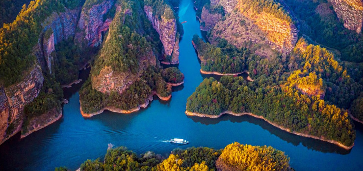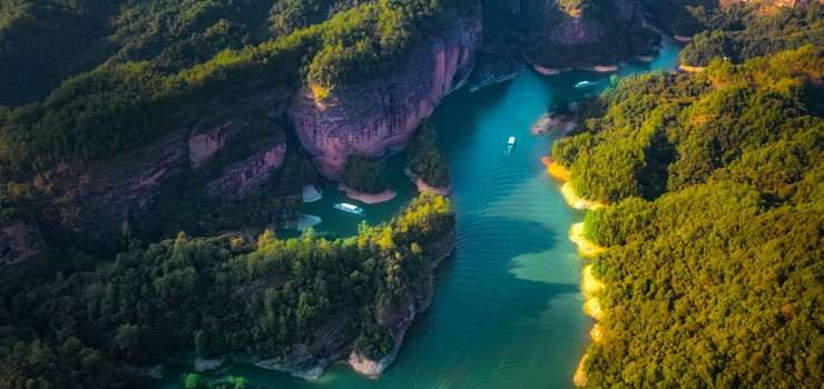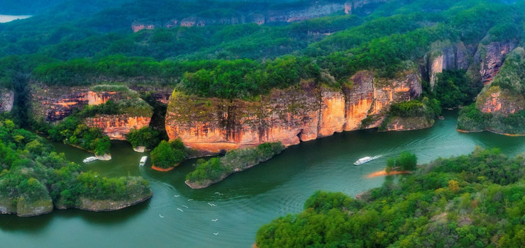 大金湖,素有“天下极美湖山”之美誉。浩瀚幽深的湖泊与千姿百态的丹霞奇观完美结合,阳刚与阴柔相济,豪放与婉约互补,构成了景象万千的水上丹霞奇观。
