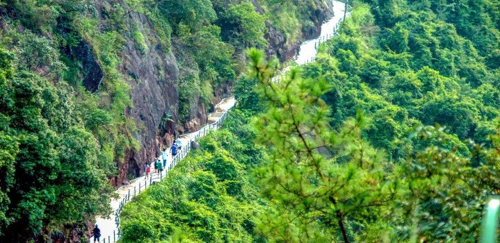 登山栈道从山脚至山顶,沿溪流蜿蜒而上修建,全长近10公里,共2000级阶梯,是广东省内至长原生态尽显的步行栈道,且大部分栈道是悬空栈道,适合远眺观景、驻足拍照、休闲锻炼、挑战自我(自费项目)。