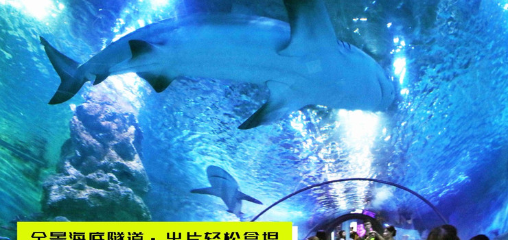 馆内拥有长达近百米的海底隧道,走进隧道仿佛置身于蓝色海洋,自由穿梭于各种鱼群之间,伴随着悠扬的音乐,透过拱型的亚克力,可以看到色彩斑斓的鱼儿欢快地在珊瑚丛中游来游去,似乎伸手可及;另外还可以看到英武彪悍的大鲨鱼“漫步”于隧道中,让您尽览迷人的水下世界。