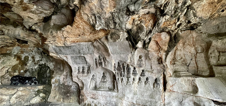 风洞位于明月峰山腰,在它上面写着“叠彩山”三个大字,为书法名家沈尹默先生手笔,旁边有陈毅元帅的诗句“愿做桂林人,不愿做神仙”,风洞贯穿山之南北,前洞叫叠彩洞,后洞叫水牖洞,中间一段才叫风洞,共约20米长,它中间小而两头大,如一面腰鼓,窄处仅容一人通过,而它的后半部分则大如厅堂,自古以来就是被书写的对象。