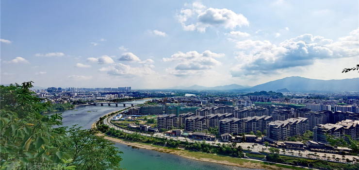 江山会景 登山峰俯瞰烟雾缭绕中的城市
