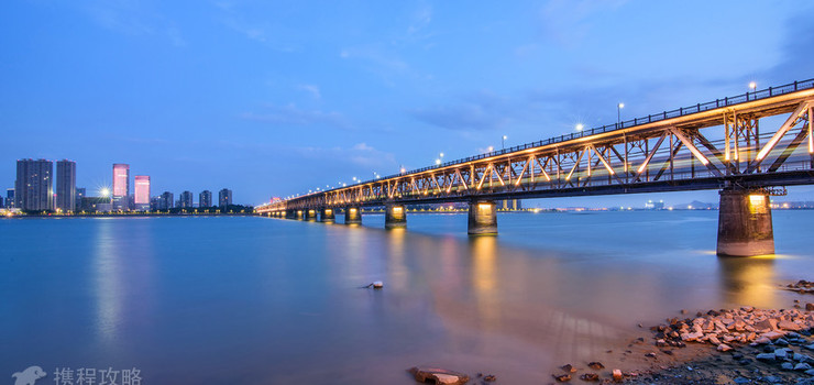 钱塘江大桥位于浙江省杭州市西湖之南,六和塔附近的钱塘江上,由茅以升主持设计,是我国自行设计、建造的双层铁路、公路两用桥,横贯钱塘南北,是连接沪杭甬铁路、浙赣铁路的交通要道。桥长一千四百五十三米,分引桥和正桥两个部分。正桥十六孔,桥墩十五座。