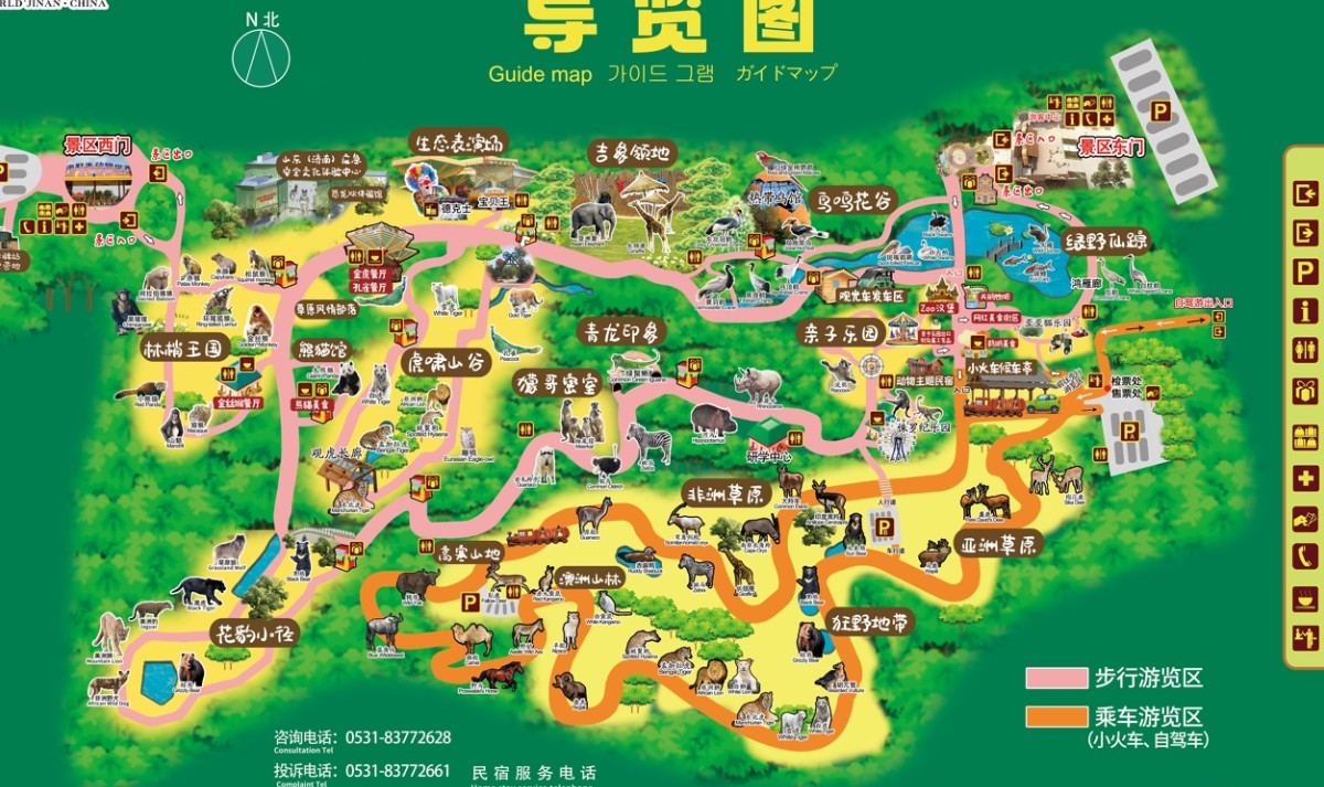 景区乘车游览区的自驾游,更是一种全新的观赏形式,不一样体验的游园方式。自驾爱车游览可以与野生动物更亲近,郭方位观赏,给您带来与兽同行的非凡体验。快来进入动物生活区域,探头和它们Say Hello ,挑战您的心跳吧。
