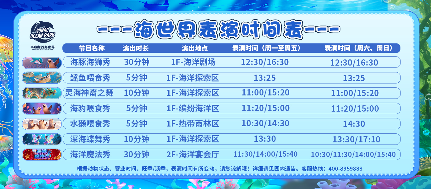 动物表演区一一精彩海豚海狮表演,体态轻盈的加州海狮、身长3米的太平洋宽吻海豚,在表演师的指挥下,巨大的身体展现各种流畅跳跃的身姿。近五千平方的表演场、两千个座位、炫彩光影特效、音响环绕、扣人心弦的动感音乐,与海豚海狮的精彩表演完美结合,为大家送上一场精彩的动物秀。