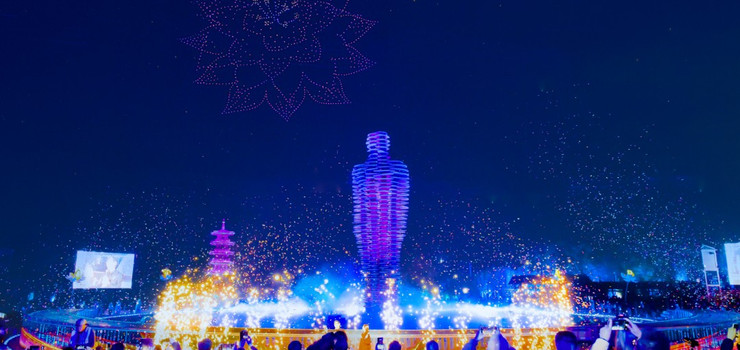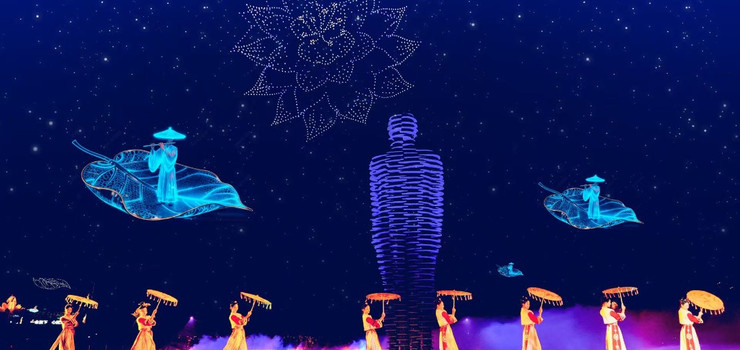 五灯湖“花开五叶”表演 绚丽之夜,惊艳妙极