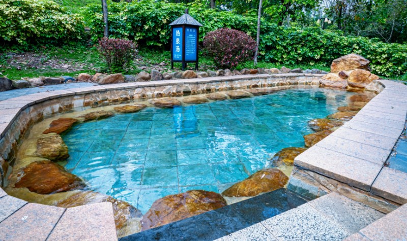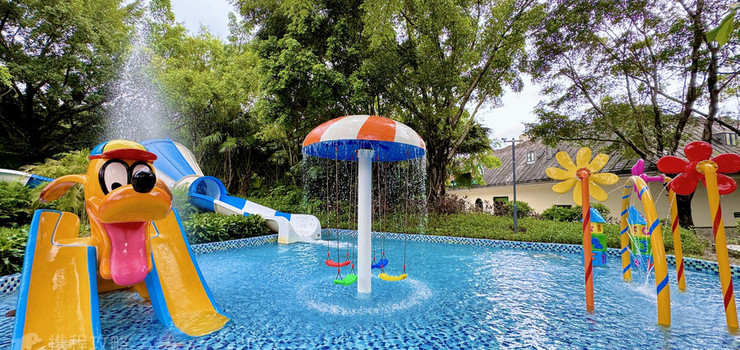 森林里的山泉水泳池,占地1000平方米,水位达2米,采用国际专业的循环水处理、消毒措施等,带给您游泳健体的无忧情怀。池边广场,火山石雕塑而成的玛雅文化图腾柱,古朴神秘,融合音乐、喷泉以及变幻的激光彩灯等,倾情演绎远古与现代完美结合的华彩乐章,独特体验森林嬉水的神秘风情。