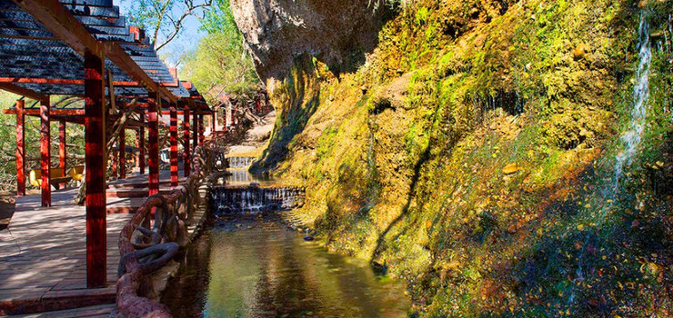 该景区距今约1400年的历史,座落在万亩自然湿地草场上,景区内古柳百态成荫,泉水清凉甘甜,风光旖旎。