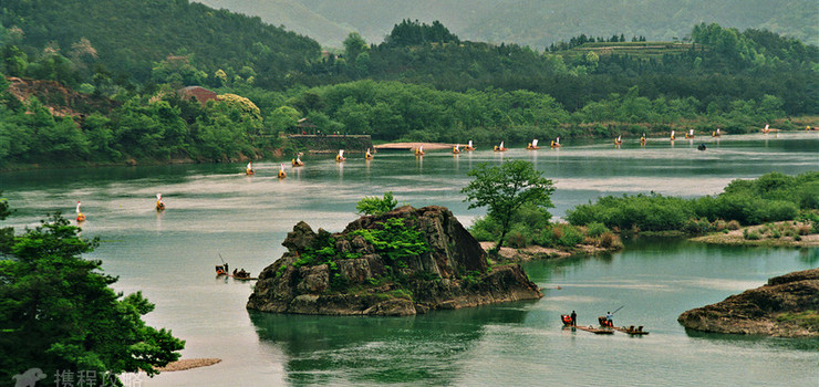 楠溪江漂流,特色是静静的漂,让心与自然融合,这正是乐静的人所向往的。竹筏排在楠溪江边“筏公”们用当地的方言让游客脱掉鞋袜上筏,坐在筏中的竹椅子上,脚自然浸入水中,情不自禁地弹起水花,悠然自得。