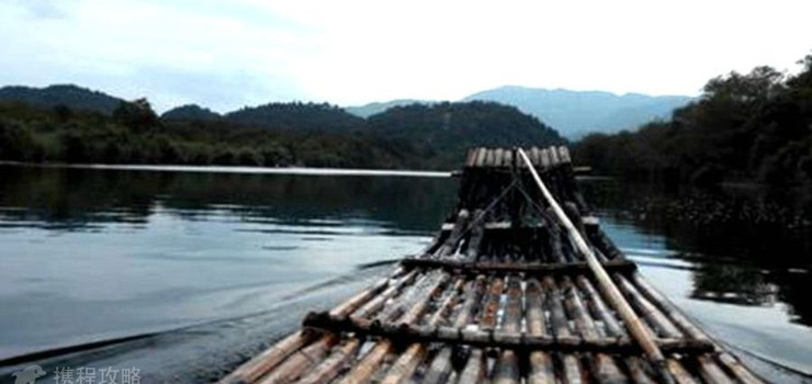 竹筏排在楠溪江边“筏公”们用当地的方言让游客脱掉鞋袜上筏,坐在筏中的竹椅子上,脚自然浸入水中,情不自禁地弹起水花,悠然自得。