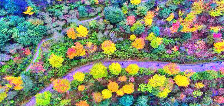 每到秋季,各类树叶相继变色,组成姹紫嫣红的彩色森林,美不胜收。