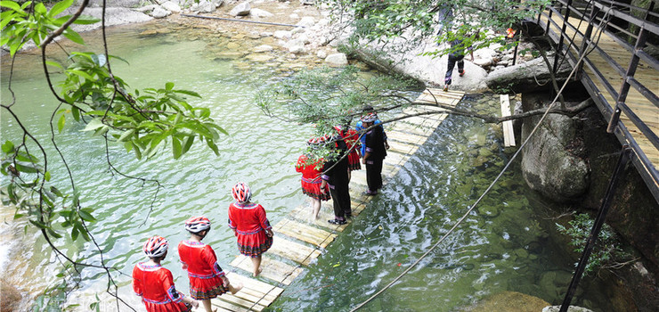九嶷山寻龙谷是喀斯特地貌原生态峡谷,全长3000米。急流、怪石、深潭、瀑布、巨树等构成了一个神秘地带。保留原始峡谷的基础上修建了栈道,溯溪戏水游乐设施,为户外爱好者一个不可多得的旅行胜地。