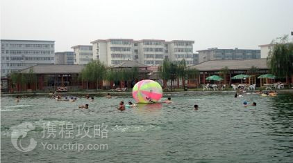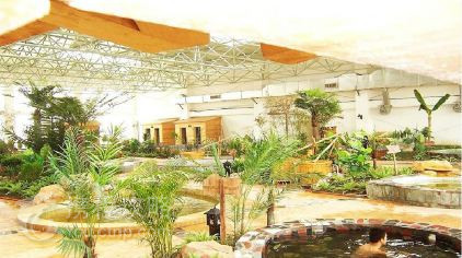 【宿】温泉客房区建有四合院一座,别墅区三栋,共有按三星级标准配备设有豪华温泉套房4间,总统套房4间,豪华温泉间19间,奢华标准间21间。温泉大厅二楼设有迷你大床房13间,休息按摩间23间,可同时容纳100多人下榻。还设有VIP休息间可提供35位团队宾客同时休息。房间内设施均按照三星级标准配置,同时客房区取用纯正的地下温泉水供顾客洗浴,另外还配有自动麻将桌满足客人娱乐需求。