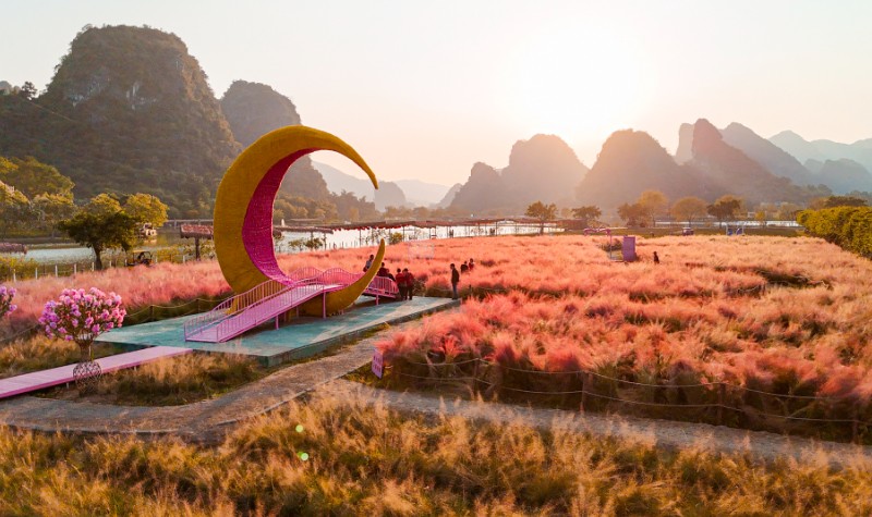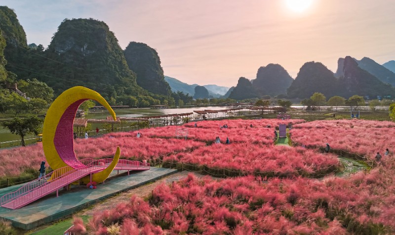 峰林晓镇国际生态农业度假区位于英德市的西南部60公里的九龙镇,地处美丽的英西峰林走廊景区内,这里山清水秀、风景如画,有万亩峰林,上千亩花海。景区内石山奇峰林立、溶洞奇特,形成了独特的生态环境,素有“飞借桂林山,漓江换明迳,游廊迎奇景,簪峰镇九龙”的美称。