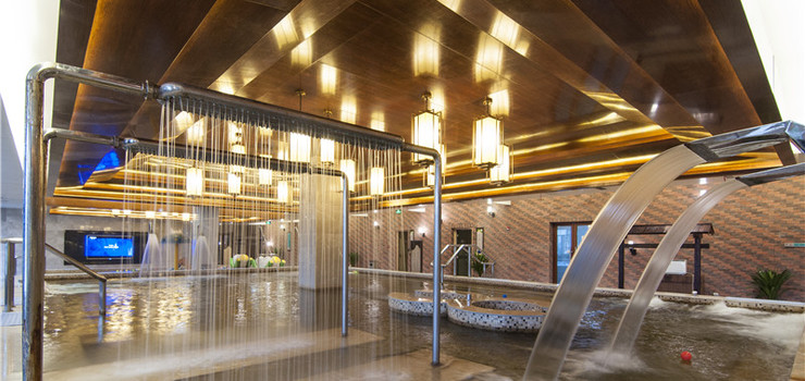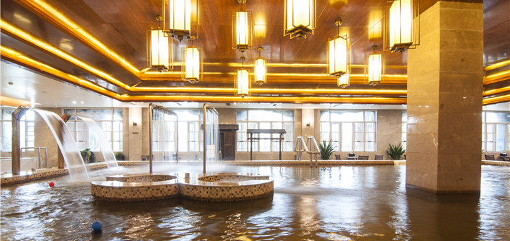 酒店拥有5000多平方米的温泉中心倾力打造水环绿岛“水中有山,山中有泉”,的仙境云端温泉。温泉日出水量700方以上,水中锶、铁含量达到优质医疗热矿泉水---锶泉、铁泉命名的浓度。拥有室内SPA水疗池、鱼疗池等不同功效的10个泡池,配备足疗房、棋牌室、简餐等休闲设施。露天温泉区设五行养生区、动感水疗区、花草区、情侣区、石板浴区等区域,共有20个大小不一的温泉泡池及7间特色温泉SPA屋。