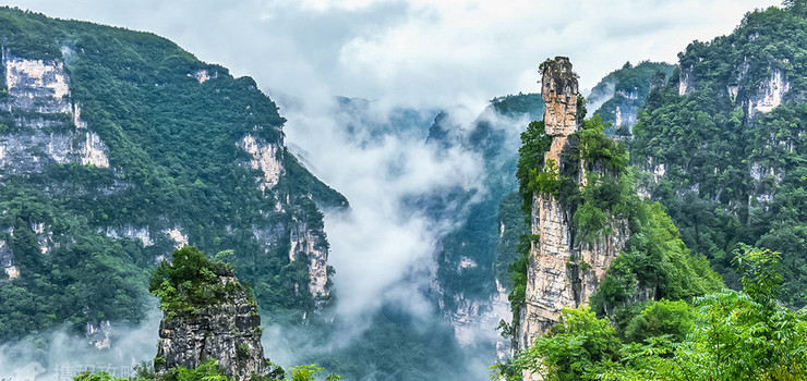 霸王河两岸山峰高耸,森林茂密,石山石峰交相辉映,有的形似蜡烛,有的形似宝塔,有的形似竹笋,有的形似花瓶。形态各异,十分壮观。