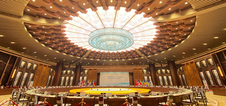 2016年9月4至5日,杭州国际博览中心成功接待2016年G20峰会。主会场杭州国际博览中心以恢弘敦厚、沉稳大气与清雅温润、俊逸通透,在各国元首和国际媒体面前充分展现了中华文明的多重印象、地方神韵和从容气度。