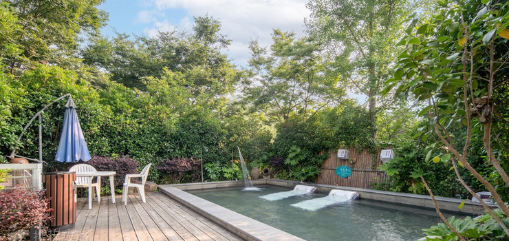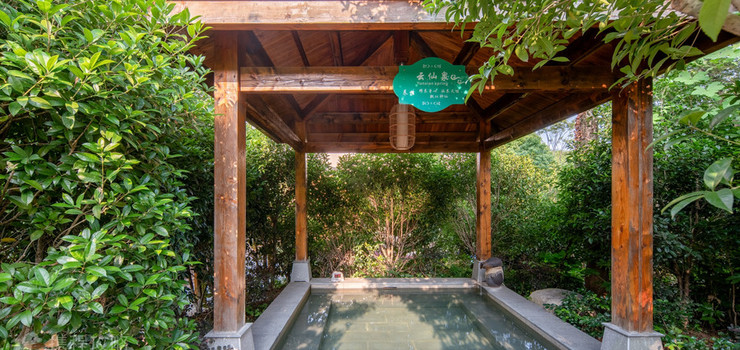 竹海国际会议中心的温泉来自于地下1803米,常年出水温度在40度,含有氡、硒、锂、锶、锌、碘化物、偏硅酸等40多种微量元素,PH值为8.28,属弱碱性水。达到医药用理疗矿水标准。其中含氡量每升达49贝可,在全国实属罕见。