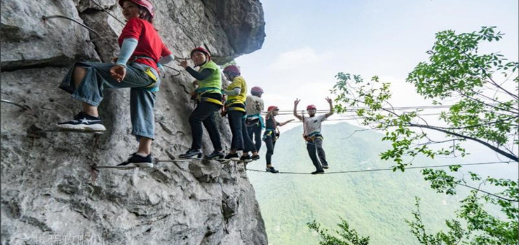 栈道沿途有3D魔幻平台、龙王谷、三清境、君临台、福缘洞、龙吟九天壁、猎鹰岩、蝙蝠崖九大奇观。