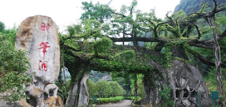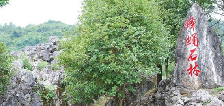 蜂蛹石林景点,由四大园林石之一的英石组成,成片蛹巢状的英石构成一幅百蛹成蜂、展翅离巢后的独特石林奇观。有天然玉面观音的观音洞、百米飞瀑大瀑布、200多米长的绝壁空中栈道。