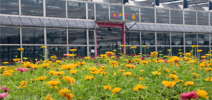 园区内种植有过百种花卉,有太阳花、醉蝶花、百合花、郁金香、金鱼草等多种国内外名花。园内还有观赏性玻璃温室,里面种植10种不同颜色太阳花,可供游客一年四季入园观赏。