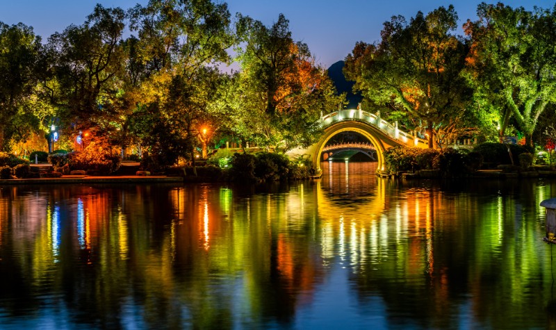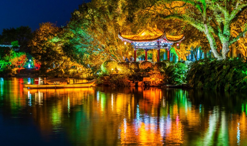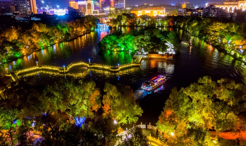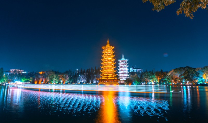 一颗透出桂林历史文明光芒的水晶珠 灯光璀璨,倒映迷离