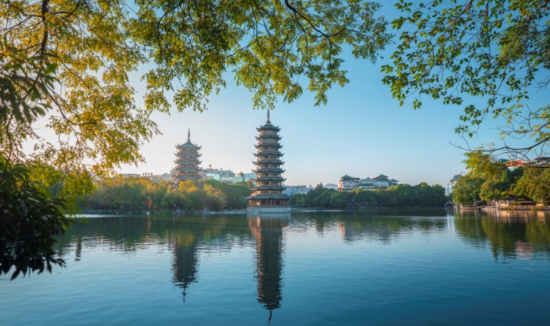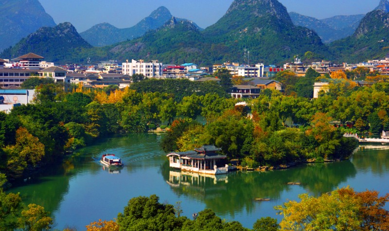 当时的桂林城湖塘密布,水系发达,乘一叶小舟就可尽览城中诸多风景名胜,但是随着历史变迁,江湖隔断, 水上游览随之衰落。