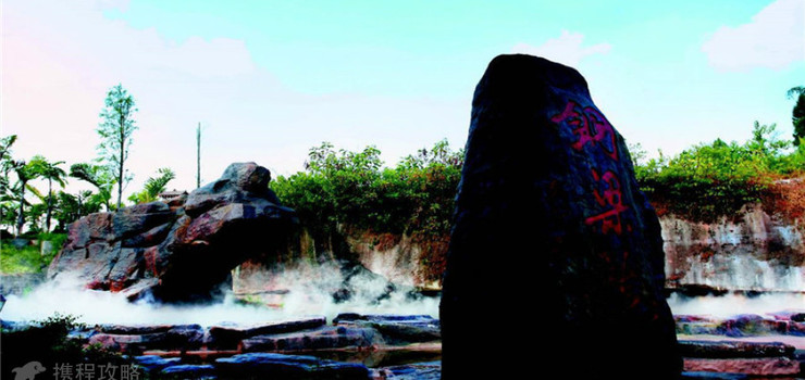 景区内随处可见各种龙形图腾,腾龙阁用鹅卵石打造的龙形门廊别具一格,大小不一的圆石宛如龙鳞,两条飞龙栩栩如生。