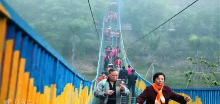 玻璃吊桥作为近几年火起来的旅游项目,被大批的景区入驻。而铜梁龙景区的玻璃吊桥竟成了一枝独秀的局面,原因也在于它是西南地区斜度较大的吊桥。99米长的桥身横跨青云湖,寓意“健康福寿九十九”。桥底采用双层钢化玻璃设计,站在桥上可以将30米高度下碧波荡漾的湖面和两岸青翠的竹林尽收眼底。