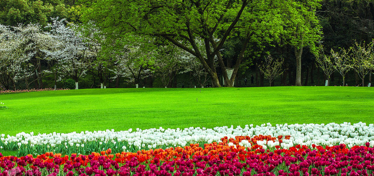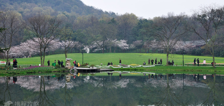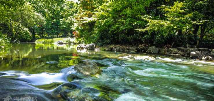 太子湾公园引东邻净慈寺、天园及张苍水墓祠、章太炎墓道,西接南高峰,北有一长列高大葱郁的水杉密林,如翠帷中垂,与车水马龙的南屏路相隔,颇似一把太师椅的椅座。全园以园路、水道为间隔、约略划分为东、中、西三块景区,东部景区为望山坪,颐乐苑等。