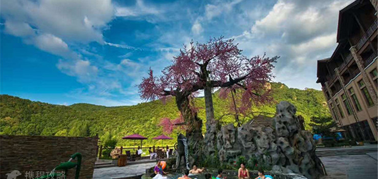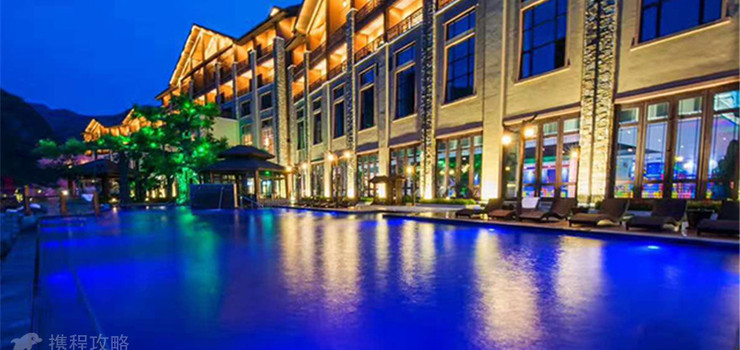 枫香谷温泉区营业面积8000余平,依山枕河,设有室内外温泉泡池40余个,巧妙镶于山水之间。酒店秉承“回归自然、真山、真水、真温泉”的理念,充分应用溶洞、暖廊、石板等诸多元素,将温泉的养生性与强体性结合,设有中药养生区、金汤药浴区、滋补养颜区、四季五行养生区、温泉石板区等特色区域。同时还建有高温汗蒸房、大型游泳池、儿童戏水池、水疗池和河景无边界泳池,既符合传统养生文化又融入时代欢乐主题。