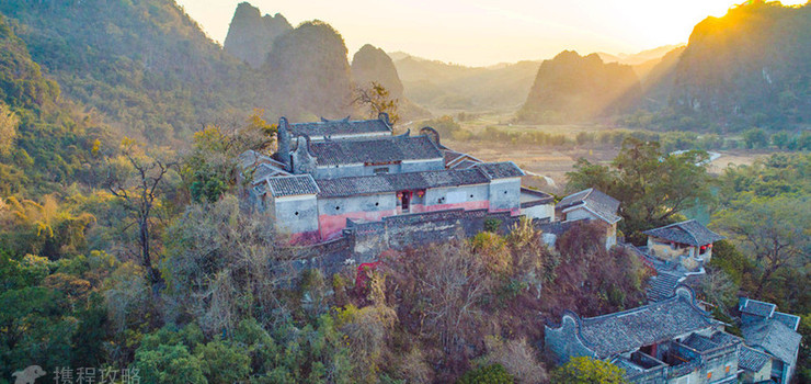 位于黄花镇坑坝的螺山,始建于清朝中期,建筑物依山势叠建而上,从山脚至山顶、气势壮观,有“小布达拉宫”之称。整个建筑四面封闭,仅中间一条石阶为通道,且山后陡峭,易守难攻,是当地彭氏族人为抵御山贼而建。在山顶可眺望周围峰林景色。