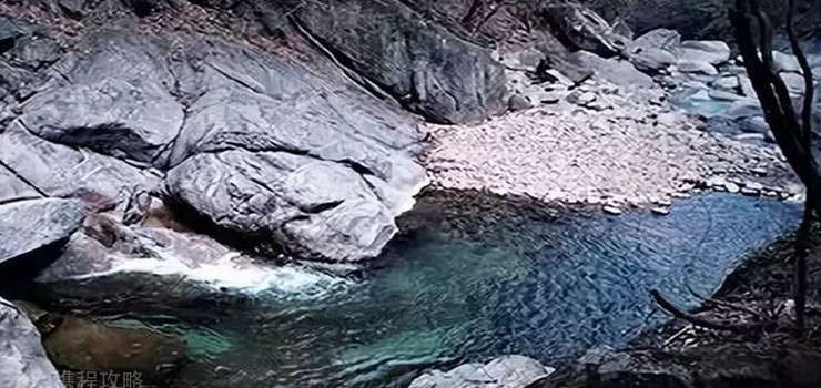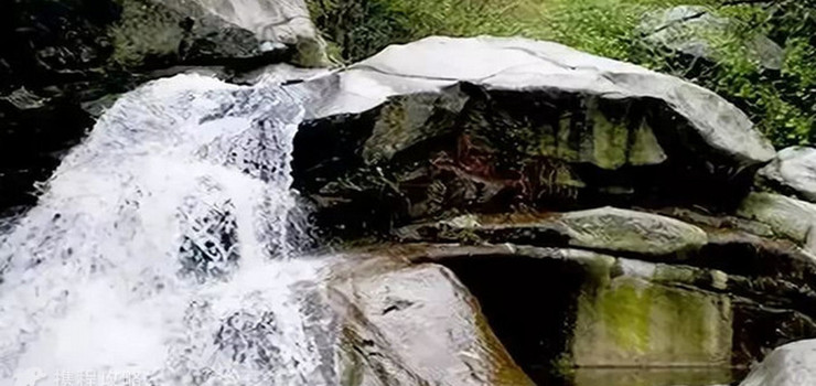 当我们来到了一个称为花潭石的地方时,激流清辙的水流,涌溅在泉石之间,涓涓细流盘绕在一块大大的石头上,把你的视线引向河道上的下一水景就叫湘妃池。 湘妃池起来水势丰满,隐而不发,汹涌澎湃,旁边有一看像金龟,忠实地守护着她,所以被人们戏称金龟守浴。 相传湘妃随舜帝巡视天下时,因喜爱这源自大别山深处的清澈泉水,而在此沐浴休憩,故称为湘妃池。而舜帝为了让湘妃能够安心沐浴,不被打扰,便派忠厚的金龟在此守候,为湘妃驱赶误入此间的凡夫俗子、飞鸟走兽。如今,湘妃早随舜帝羽化而去,只有忠厚的金龟,恐因没有收到舜帝的命令,而一直守候在这里,历经风霜洗礼,幻化成石。在金龟的上方有一处面积大约50平方左右的小石潭、湘妃池下方也还有一个这样的小石潭,潭水均清澈见底,终年不竭;湘妃池和这两个石潭在地貌成因上都属壶穴。连接着它的是一段山边小路,仅五分钟的路程,我们就可以来到了龙井河下游的龙井瀑瀑布,人还没有走近,奔腾的水雾扑面而来,约五十米高如柱的水流从天而降,直泄瀑底,这是瀑布中水量大的龙井潭。