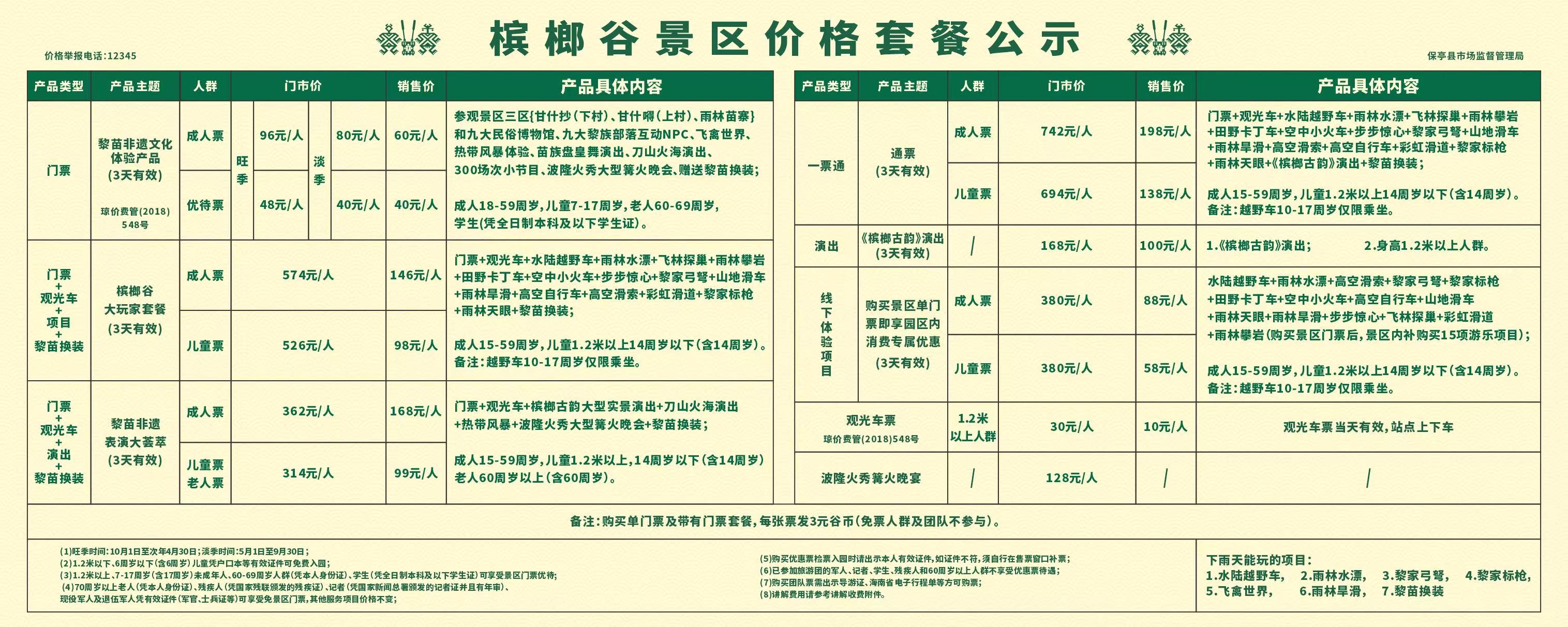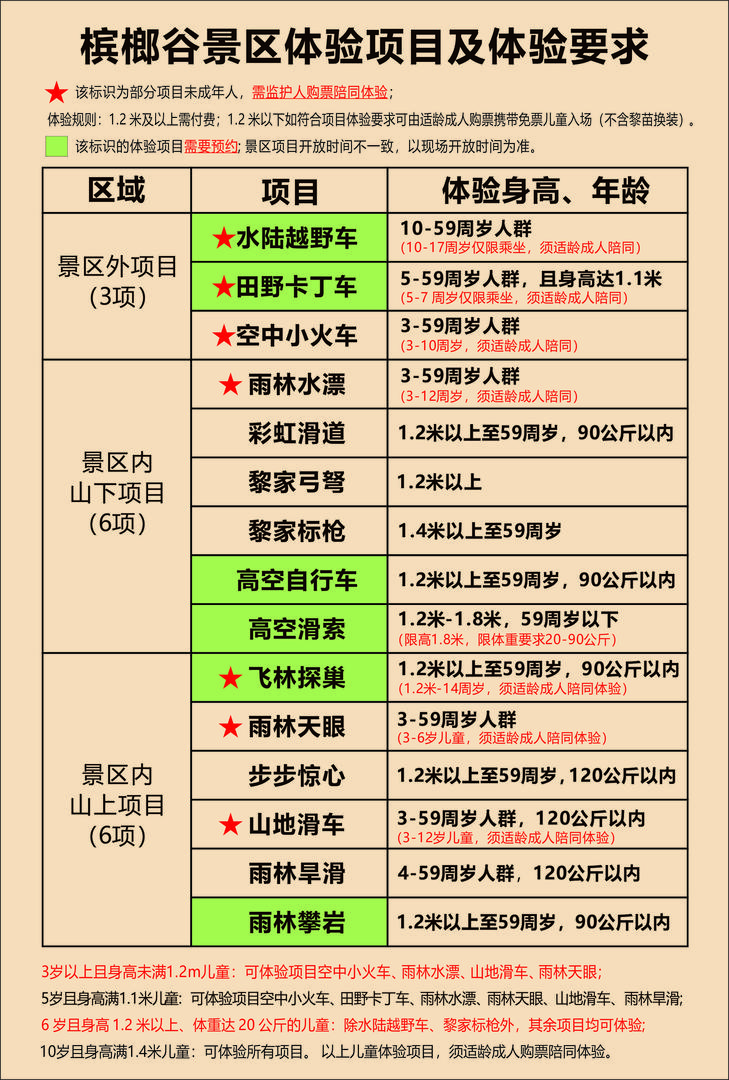 儿童:1.2米(不含)-1.4米(含)之间、18周岁(含)以下未成年人购门票享受半 票优惠,其他服务项目价格不变;