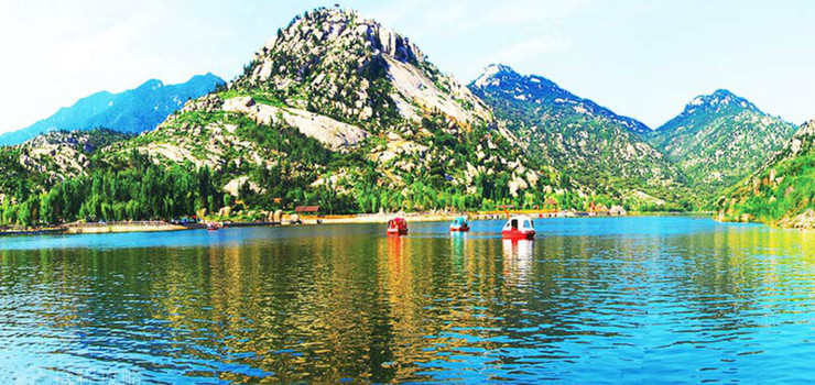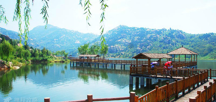一泓秀水环抱着一座奇山,山上松苍石怪、飞瀑流泉,水上游船点点、曲桥回旋,石林就位于这山水之间,但见巨石峻岩:峥嵘壁立、洞天相连;或立如砥柱、峭如剑峰;或隐如伏虎、突如惊龙;
