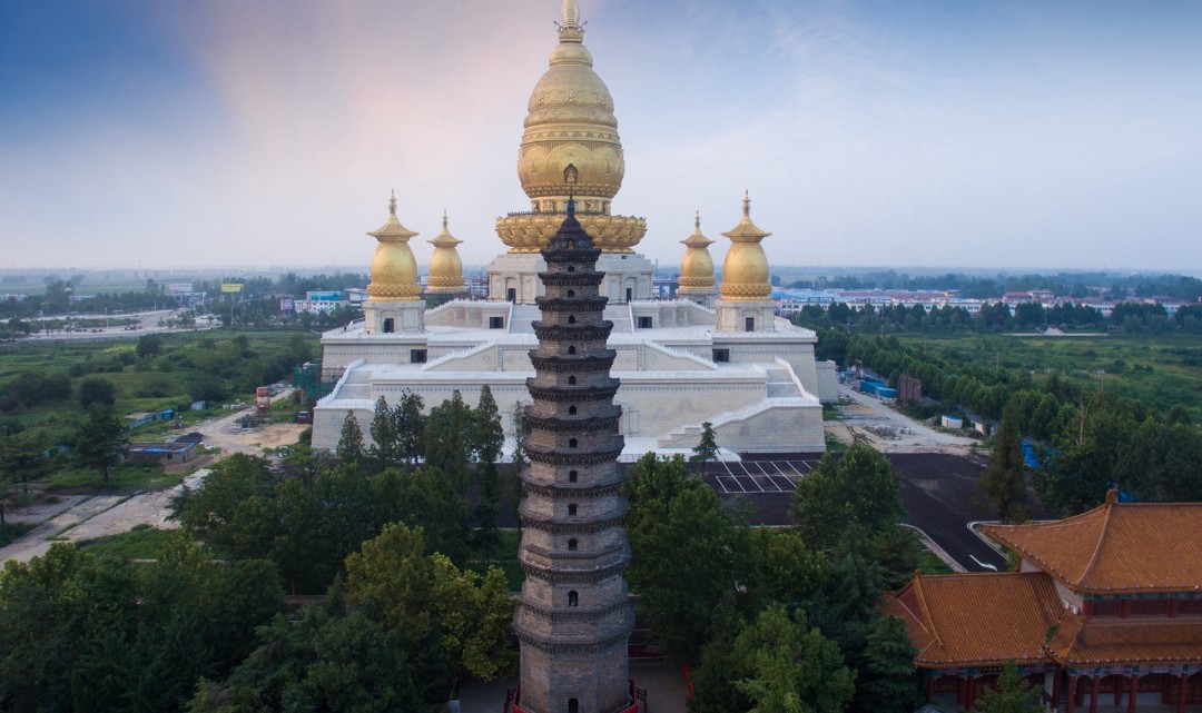 寺内宝相寺塔(又称太子灵踪塔)建于北宋徽宗政和二年(公元1112年),为十三层八角楼阁式砖塔,距今近千年。因塔顶覆盖金黄色琉璃瓦,阳光照射时呈现金色外观,当地俗称“黄金塔”。