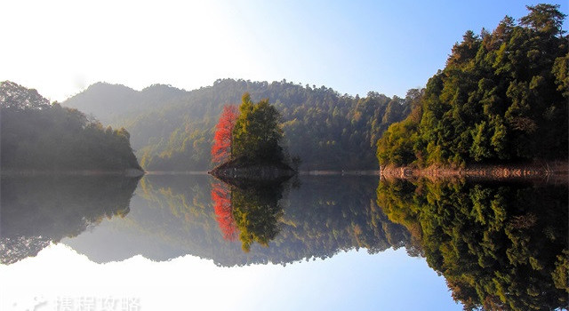 天池湖心有一个四面环水的孤岛,名叫幸福岛。岛上长着三棵枫树,每到秋天,枫树次第变红,与蓝天白云和绿水青山交相辉映,自成一处绝美的风景。