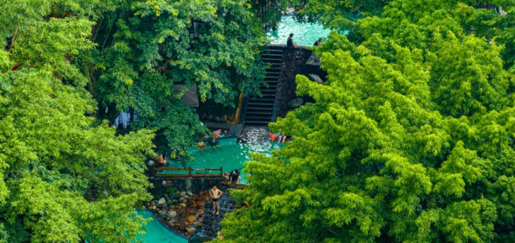 灵秀温泉水源日开采量为2800多立方米,出水口温度为49摄氏度。温泉有大中小汤池60多个,矶珠般镶嵌在青山绿水之间,仰上是峨眉山金顶携千峙百峦为翠屏,周遭有莽莽林海天然养吧。如此“天人合一”的神幻仙境,宛如天上瑶池。