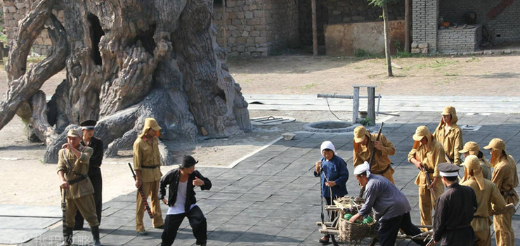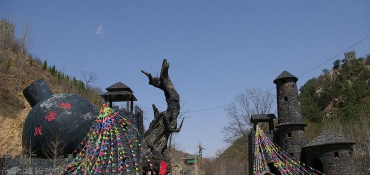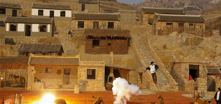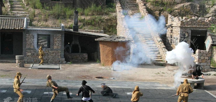 它是根据抗日战争时期的图片后期制作而成。主要由仿古建造的碉堡、古槐和巨型地雷组成,寓意着景区将踏着“地雷之风”走向全国,走向世界。“地雷战”这三个雄浑有力的大字是1991年杨得志将军亲笔提下的。为了发展旅游事业,振兴经济文化,景区重现了民国时期的街道风貌。通过这些古老的民俗建筑,可以找到到民国时期的感觉。