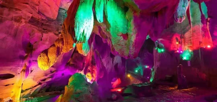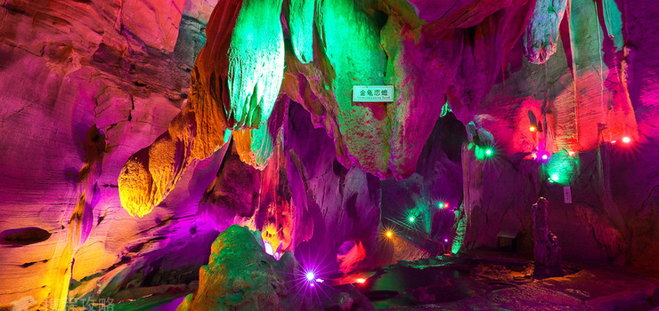 洞内石开七窍、泉奏八音、笋柱峭拔、乳花缤纷、天造地设四百景、鬼斧神工八千厅。尤以福寿双星、瑶池瀑布、蟠桃盛宴、虹桥撷蕉、古猿把关、金鸡独立等景观奇绝秀润,惟妙惟肖。