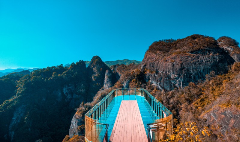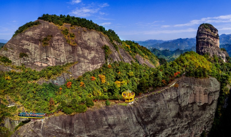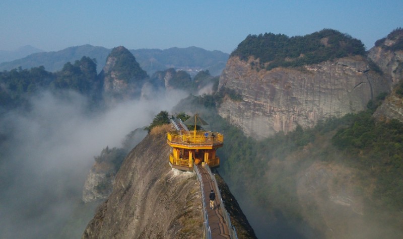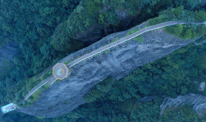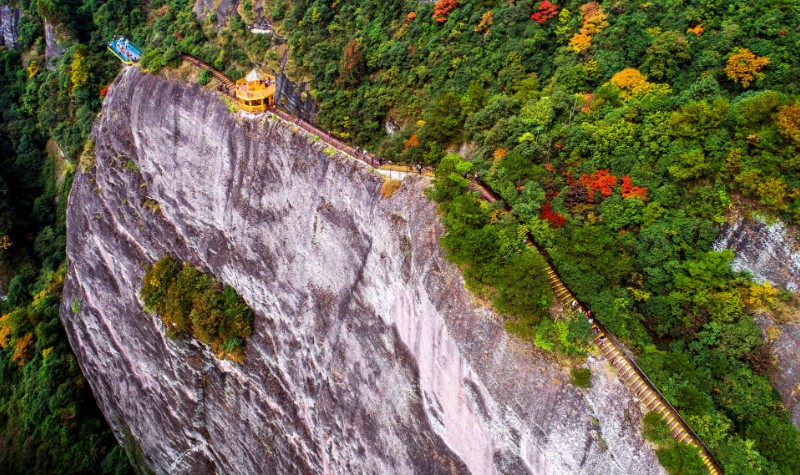 猿猴不上,鸟望生惊 天门山景区内诸多淡红色的石柱悬90°角