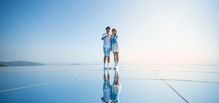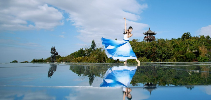 包围于森林之中,背靠青山,鸟瞰亚龙湾,象征山盟海誓。婚礼礼堂与山盟亭、平安钟交相辉映,是见证爱情之处。