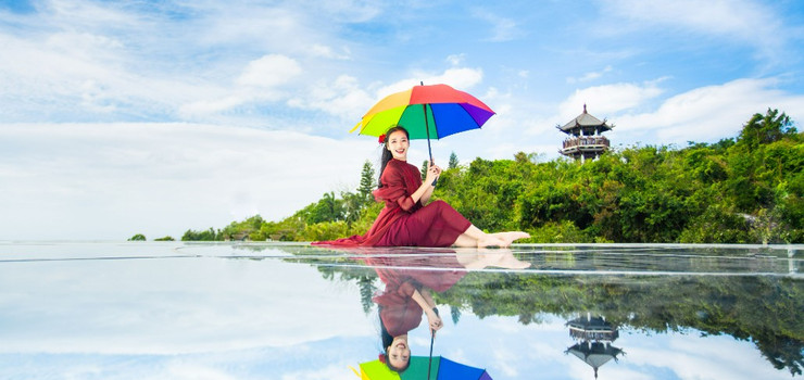 电影《非诚勿扰》主景地。过江龙索桥横跨两山之间,全长168米,离地约40米,是海南目前跨度最长、离地最高的铁索桥。走在索桥上,近看山峦起伏,远眺辽阔海洋,听鸟语争鸣,闻花香四溢,仿佛置身于海天仙境。索桥旁的烟波亭与百年古榕树相伴,是欣赏索桥全貌的最佳场所。2019年,由杨紫与李现主演的电视剧《亲爱的,热爱的》也在此取景。
