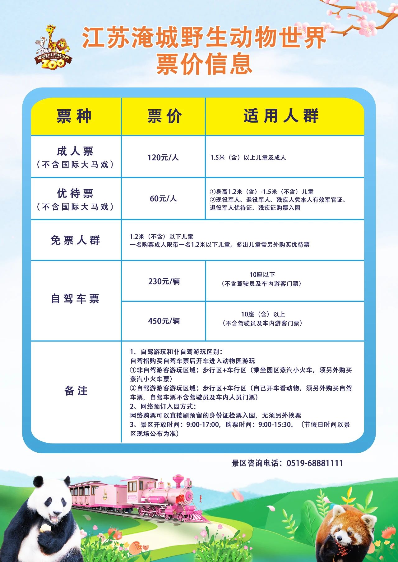 3.自驾车的票是可以开车入淹城野生动物园自驾区,车内的人仍然要购买成人票。