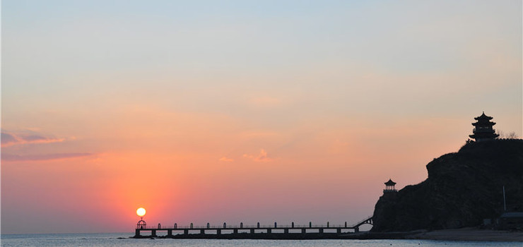 观日出日落 朝看黄海日出,暮观渤海日落