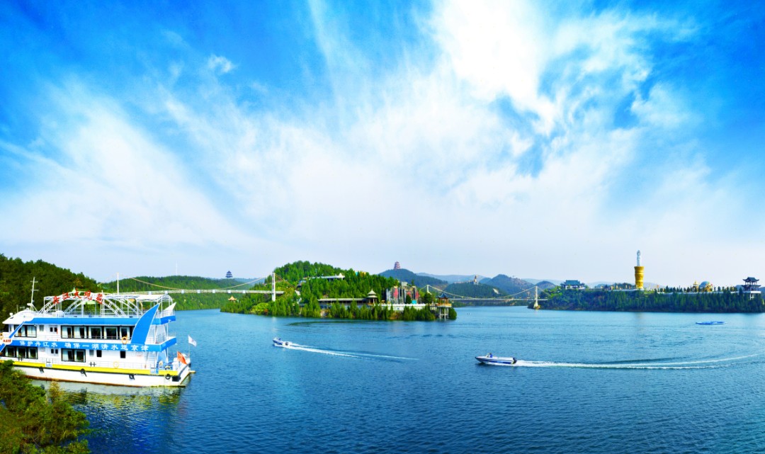 景区依丹江湖沿岸而建,拥有风格迥异的万米观江长廊,布局合理的南水北调中线工程纪念馆、楚风楼、范蠡阁、世界精英馆、中华长河馆、文博园、中华世纪龙等50多处固定景点,错落有致,内涵丰富,趣韵叠加。景区游览车观光、湖中乘游船揽胜、空中直升机俯瞰,实现“海陆空”立体化观光接待,满足不同消费群体游览观光需求。