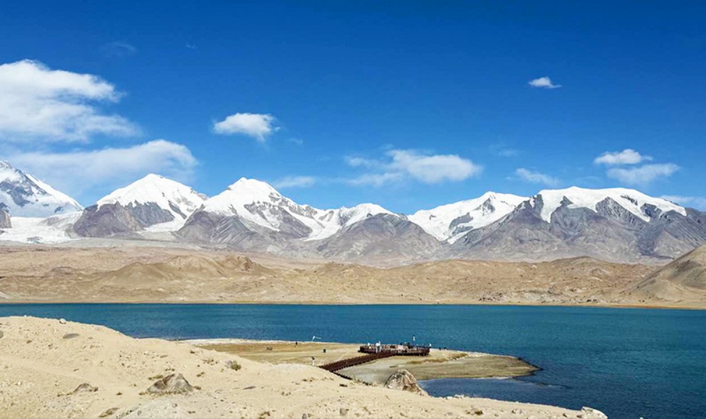 喀拉库勒湖位于“冰川之父”幕士塔格峰脚下,因湖水深邃幽黯,故名“喀拉库勒”,柯尔克孜语意为黑湖。