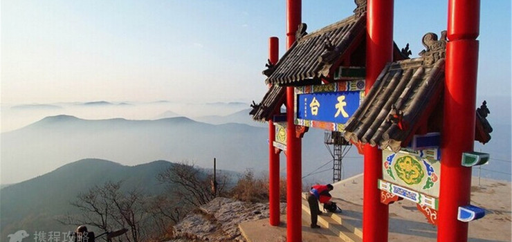 抱犊崮拔地通天,鹤立群山,以她独有的雄、奇、险、秀而著称,崮身宛如高高的圆杯倒扣于山峰之上,自颈至巅,峭壁如削,山石裂缝纵横,古柏倒挂。晴日的早晨登临崮顶观云海日出,只见云水一色,曦晖初显,一轮丹阳冉冉跃出云海,蔚为奇观,故有诗赞曰:“峭壁早邀沦海日,方台平宿泰山云”。